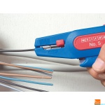 Клешта за изолирање – Weicon No. 5 има должина од 5 – 12 мм. Поместувачот за должина може да се отстрани, доколку е потребно. Добро пристапен страничен секач е вграден во алатот, кој е погоден за дијаметар на кабел до 2 mm. Сечилата се заменливи. Малата тежина на клештата а работа без замор.